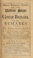 Magnæ Britanniæ notitia: or, the present state of Great Britain. With divers remarks upon the ancient state thereof / By John Chamberlayne.
