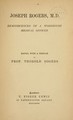 Joseph Rogers, M. D. : reminiscences of a workhouse medical officer / edited with a preface, by Prof. Thorold Rogers.