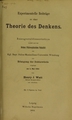 Experimentelle Beitrage zu einer Theorie des Denkens / von Henry J. Watt.