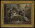 A woman in bed in a sick-room, attended by a physician, receiving the blessing of the Madonna del Parto. Oil painting by R. Pistoni, 1872.