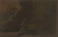 Votive picture: a man praying to the Virgin and Child in a church in which either he or another man stands on a ladder which is falling away from the wall. Oil painting.