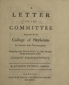 A letter to the committee appointed by the College of Physicians to review their pharmacopoeia: containing some remarks on their draught for the reformation of the London pharmacopoeia / [Richard Reynell].