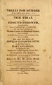 The trial of Edmund Thrower : blacksmith, late of Carbrook, in Norfolk, for the wilful murder of Thomas Carter, & Elizabeth Carter, his daughter, on the 16th day of October, 1793, at Cratfield, in the county of Suffolk; and also the trial of John and Elizabeth Smith, for the wilful murder of Mary Ann Smith, an infant aged 8 years, daughter of the said John Smith by a former wife; by starving and cruelty, at Cookley, in the county of Suffolk. Before the Hon. Mr. Justice Heath, at the assizes held at Bury, March 21, 1812 / Taken in court by George Kent.