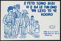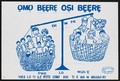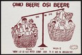 Scales bearing the weight of a large and small family: family planning in Nigeria. Colour lithograph by Health Education Unit Abeokuta, ca. 2000.