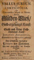 Vellus aureum, et chrysopoeia, seu chrysopoeia major et minor, das ist Gülden-Vliess, und Gold-Erzielungs-Kunst ... / Johannis Augurelli ... Aus dem Lateinischen ins Teutsche übersetzet von M. Valentino Weigelio.