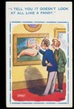 Two gay men in an art gallery looking at a painting of a female nude. Colour process print after Caport, 195-.