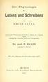 Die Physiologie des Lesens und Schreibens / von Émile Javal ; Autorisierte Übersetzung nach der 2. Auflage des orginals nebst Anhang über deutsche Schrift und Stenographie von Dr. med. F. Haass.