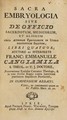 Sacra embryologia : sive de officio sacerdotum, medicorum et aliorum circa aeternam parvulorum in utero existentium salutem, libri quatuor; / auctore ac interprete Franc: Emmanuele Cangiamila.