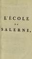 L'école de Salerne, ou l'Art de conserver la santé : en vers latins et françois / avec des remarques; recueillie, augmentée & publiée par M. Levacher de la Feutrie.