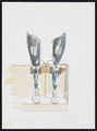 Prosthetic legs wearing a pair of trainers. Watercolour by Julia Midgley, 2012.