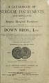 A catalogue of surgical instruments and appliances : also of aseptic hospital furniture including a large number of original designs manufactured and sold by Down Bros., Ltd.