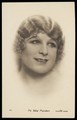 Billie Manders in drag; vignette portrait. Photographic postcard, 1929.