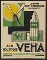 A mosquito, and a bottle of Veha anti-mosquito lotion: advertisement for the lotion. Colour lithograph, 19--.