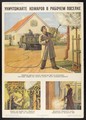 Malaria: spraying a workers' settlement with DDT and benzine hexachloride (lindane) to kill the mosquitoes. Colour lithograph after A.D. Polumordvinov and others, 1953.
