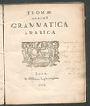Thomæ Erpenii Grammatica Arabica cum fabulis Lokmani, etc. Accedunt excerpta anthologiae veterum Arabiae poetarum quæ inscribitur Hamasa abi Temmam, ex mss. Biblioth. Academ. batavæ, edita, conversa et notis illustrata ab Alberto Schultens / Praefatio imaginariam linguam, scriptionem, et lineam sanctam Judaeorum confutat.