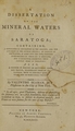 A dissertation on the mineral waters of Saratoga : containing, a topographical description of the country, and the situation of the several springs ; an analysis of the waters, as made upon the spot, together with remarks on their use in medicine, and a conjecture respecting their natural mode of formation : also, a method of making an artificial mineral water, resembling that of Saratoga, both in sensible qualities and in medicinal virtue / by Valentine Seaman, M.D. physician in the city of New-York.