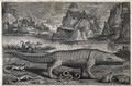 A crocodile with other reptiles on the bank of a river. Etching by A. Collaert, 16--.