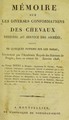 Mémoire sur les diverses conformations des chevaux destinés au service des armées, suivi de quelques notions sur les haras, couronné par l'Académie Royale des Sciences de Prague ... janvier 1808 / [Pierre Noyès].