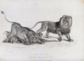 Tower of London, Royal Menagery: a lion, a lioness and their cubs. Etching by Newton after W. Berthaud.