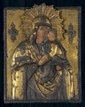 A sick clergyman from Kikrin (?) being cured by the Blessed Virgin. Oil painting by a Russian painter.