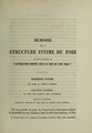 Mémoire sur la structure intime du foie et sur la nature de l'altération connue sous le nom de foie gras : mémoire qui a remporté le prix Portal décerné par l'Académie de médecine, dans la séance du 17 décembre 1851, en réponse à la question suivante : Faire connaître, en s'appuyant sur des observations microscopiques suffisantes, l'anatomie normale du foie, et l'anatomie pathologique de l'altération connue sous le nom de foie gras / par A. Lereboullet.