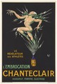 A naked athlete being electrified to show the effect of "Chanteclair" embrocation. Colour lithograph by M. Liebeaux, ca. 1910 (?).