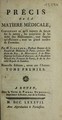 Précis de la matiere médicale. Contenant ce qu'il importe de savoir sur la nature, les propriétés & les doses des médicaments, tant simples qu'officinaux ; avec un grand nombre de formules. Traduction de la seconde partie du Précis de la médecine pratique, publié en latin [i.e. 'Synopsis universae praxeos medicae'] / Par M. Lieutaud.