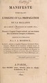 Manifeste touchant l'origine et la propagation de la maladie qui a régné à Barcelone en l'année 1821 : présenté à l'auguste congrès national, par une réunion libre de médecins étrangers et nationaux / traduit de l'espagnol par J.A. Rochoux.