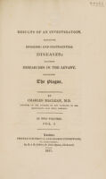 Results of an investigation respecting epidemic and pestilential diseases; including researches in the Levant, concerning the plague / By Charles Maclean.