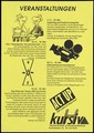 The words 'AIDS' forming the centre of a maze with four figures on the outside holding maps in an attempt to find their way in, an illustration by Ingram Pinn; an advertisement for a meeting in Berlin about HIV and homeopathy by Dr Karin Bandelin and Dr Almut Gestrich on 26 October 1993 at the headquarters of Kursiv, the Centre for AIDS and advice for gay men. Photocopy, 1993.