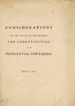 Considerations on the means of preventing the communication of pestilential contagion, and of eradicating it in infected places / [William Brownrigg].