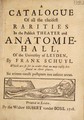 A catalogue of all the cheifest rarities in the Publick Theater and Anatomie-Hall of the University / [Rev.] By Frank Schuyl.