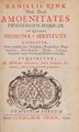 Danielis Vink med. doct. amoenitates philologico-medicae. : In quibus medicina a servitute liberatur. Nam praeter ejus originem, progressum, praestantiam, necessitatem, usum, praemia honores atque privilegia medicis concessa inquiritur, an medicina antiquitus fuerit studium illiberale, servisque tantum proprium.