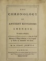 The chronology of ancient kingdoms amended. To which is prefix'd, a short chronicle from the first memory of things in Europe, to the conquest of Persia by Alexander the Great / By Sir Isaac Newton.