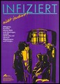 Two prisoners sitting together in a cell and one watching them from a distance; representing unwarranted social isolation of AIDS-infected and ill people in jail. Colour lithograph, 199-.