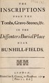 The inscriptions upon the tombs, grave-stones, etc. in the dissenters burial place near Bunhill-Fields / [Anon].