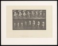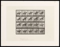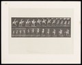 A naked man riding a saddled horse jumps a hurdle. Collotype after Eadweard Muybridge, 1887.