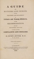 - A guide to mothers and nurses, in the treatment and management of infants and young children, with recommendations for the prevention and cure of many of their complaints and diseases / [Henry Jenner].Jenner, Henry, 1766?-1851.Date: 1826