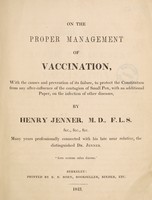 - On the proper management of vaccination ... with an additional paper, on the infection of other diseases / [Henry Jenner].Jenner, Henry, 1766?-1851.Date: 1843