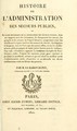 Histoire de l'administration des secours publics : ou analyse historique de la législation des secours publics, dans ses rapports avec les événemens, le changement des moeurs, les progrès et les erreurs de l'esprit humaine ... des divers établissemens créés en faveur des pauvres / par M. Le Baron Dupin.