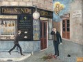 A man being hit on the head by a falling flower-pot in Rome, Via del Nazzareno. Oil painting, ca. 1890.