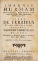 Joannis Huxham ... Liber de febribus et alia opuscula varia / curante Georgio Christiano Reichel.