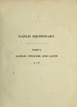 Dictionarium scoto-celticum: a dictionary of the Gaelic language: comprising an ample vocabulary of Gaelic words ... with their signification and various meanings in English and Latin ... and vocabularies of Latin and English words, with their translation into Gaelic. To which are prefixed, an introduction explaining the nature, objects and sources of the work, and a compendium of Gaelic grammar / compiled by J. Macleod and others and published under the direction of the Highland Society of Scotland ; edited by M. Mackay.
