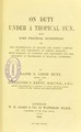 On duty under a tropical sun : being some practical suggestions for the maintenance of health and bodily comfort and the treatment of simple diseases : with remarks on clothing and equipment for the guidance of travellers in tropical countries / by S. Leigh Hunt and Alexander S. Kenny.