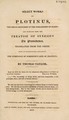 Select works of Plotinus ... and extracts from the treatise of Synesius on providence / Translated from the Greek. With an introduction containing the substance of Porphyry's Life of Plotinus. By Thomas Taylor.