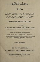 Libro de agricultura / Su autor Abu Zacaria Iahia Aben Mohamed ben Ahmed ebn el Awam. Traducido al castellano y anotado por Don Josef Antonio Banqueri.