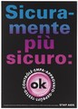 Advertisement for safe sex bearing the trademark 'OK' quality seal awarded to brand condoms and the message 'certainly safer' in Italian; one of a series of safe sex posters from a 'Stop AIDS' poster campaign by the Aiuto AIDS Svizzero, in collaboration with the Office of Public Health. Colour lithograph.