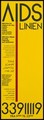 The logo of the AIDS Linien, an AIDS helpline in Copenhagen, Denmark offering personal counseling with an interpreter in English, Spanish, Arabic, Serbo-Croation, German and French. Colour lithograph, ca. 1995.
