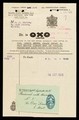 Dr. to Oxo Limited, contractors to the War Office, Admiralty, India Office, etc. : Oxo, Lemco, Beefix, Oxade drinks etc. : Fray Bentos Corned Beef, ox tongues, pressed beef, soups, pastes, glass meats, etc. : no receipt will be recognised as valid unless upon our Printed Form.