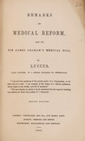 Remarks on medical reform, and on Sir James Graham's Medical Bill / by Lucius, late Censor, in a Royal College of Physicians [i.e. R. Lewins].